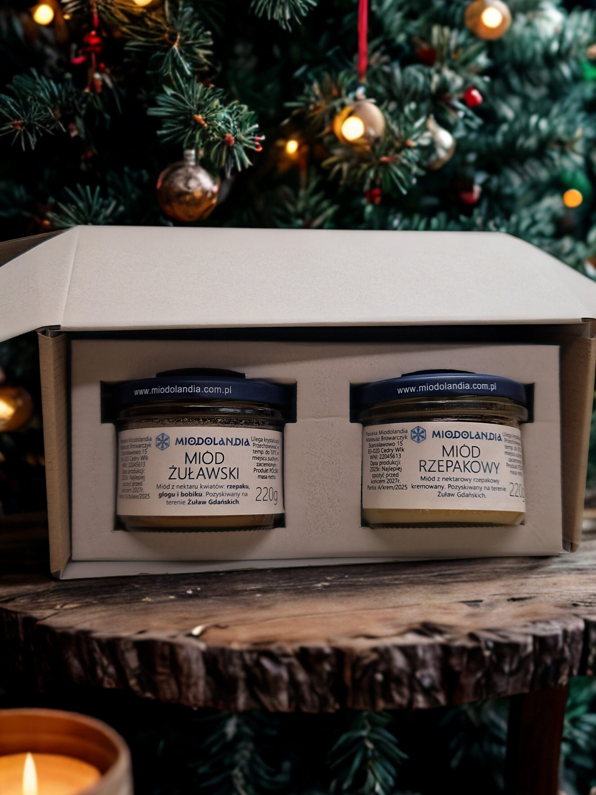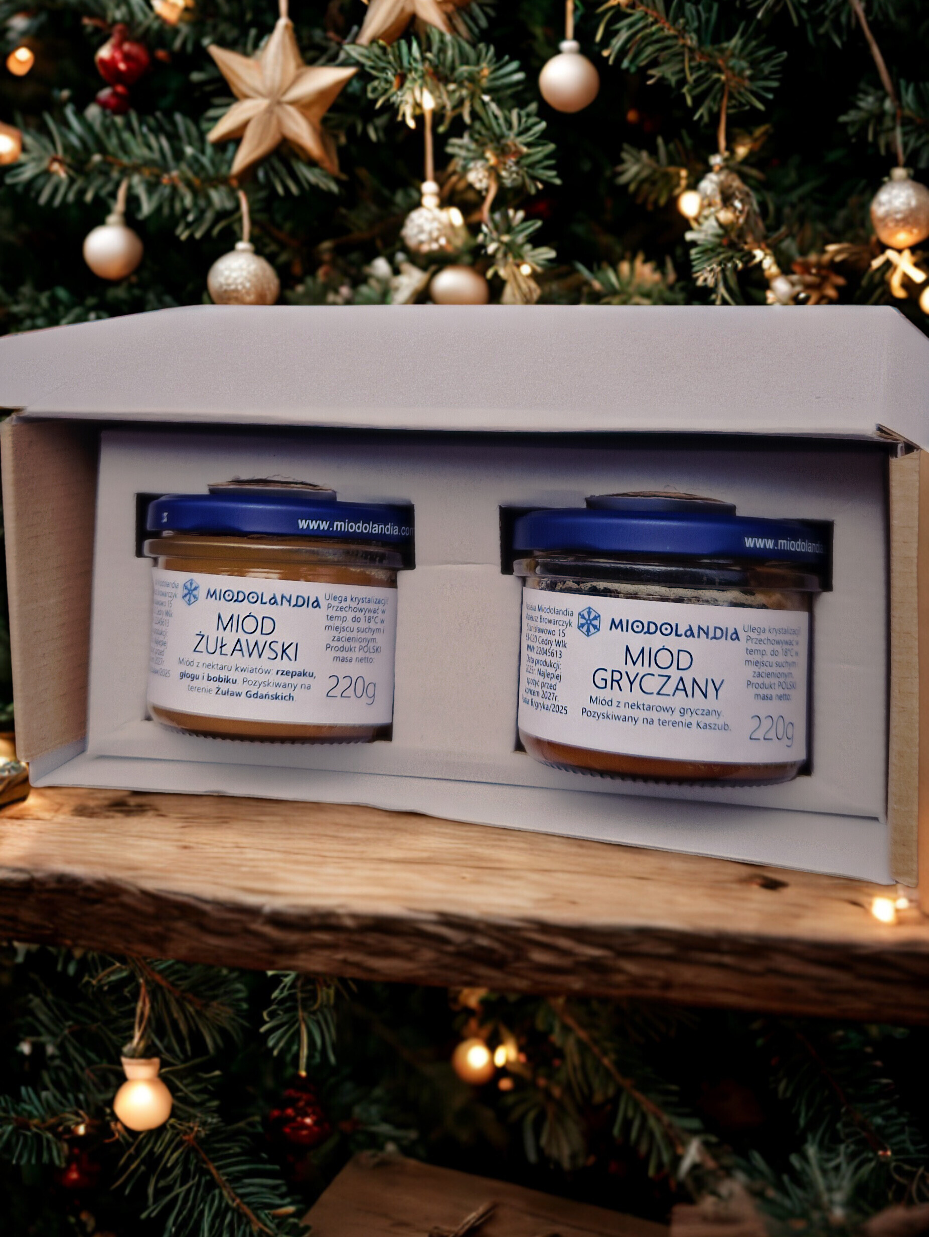Jeśli szukasz wyjątkowego prezentu, który połączy smak, elegancję i naturalność, zestaw HoneyBox S jest idealnym wyborem. To połączenie dwóch wyjątkowych miodów z naszej pasieki, zapakowanych w elegancki, minimalistyczny kartonik, który doskonale pasuje do świątecznego klimatu.