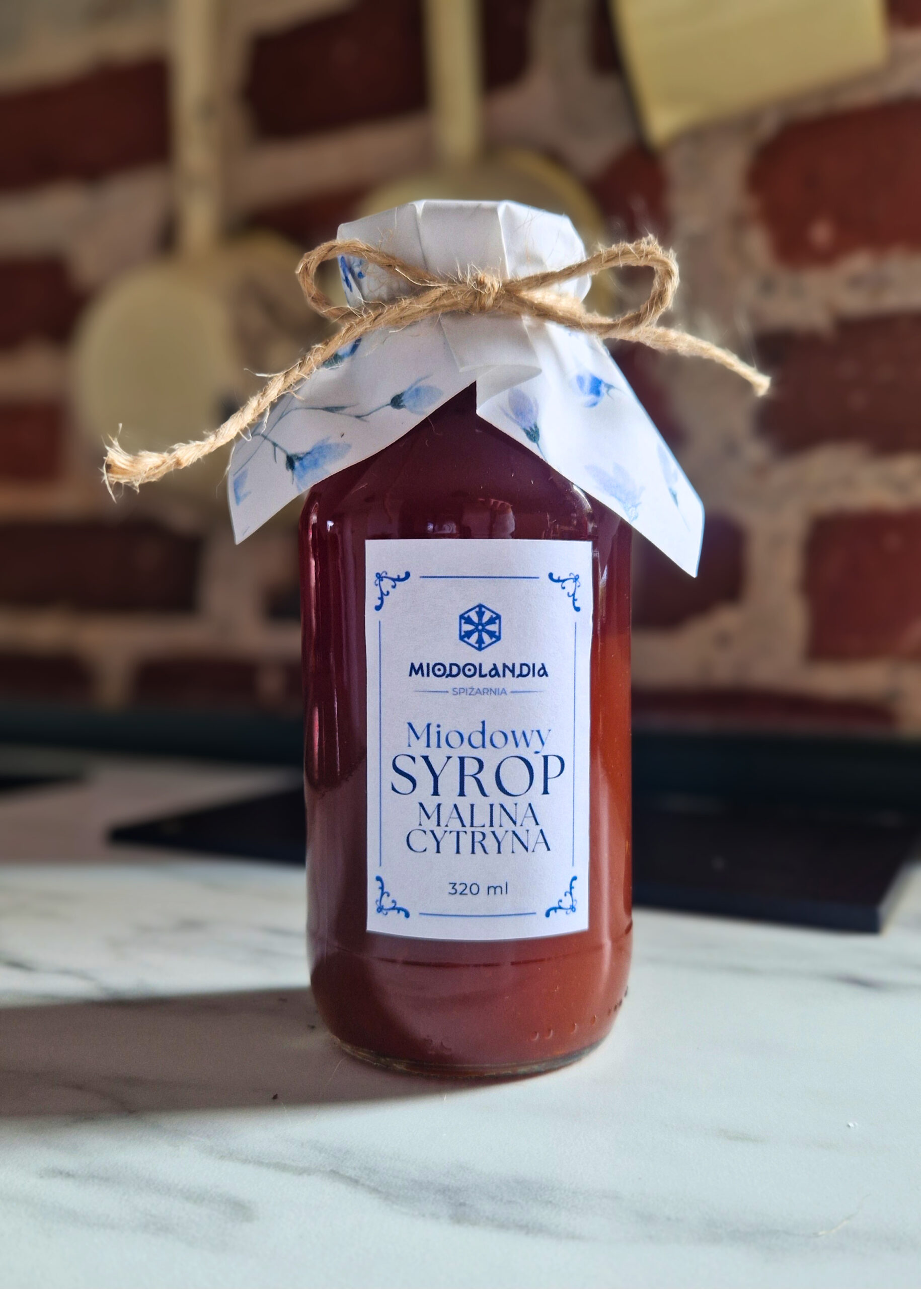 Miodowy syrop malina–cytryna to połączenie miodu z własnej pasieki, malin liofilizowanych i cytryny, które razem tworzą harmonijną kompozycję – świeżą, owocową i naturalnie słodką.