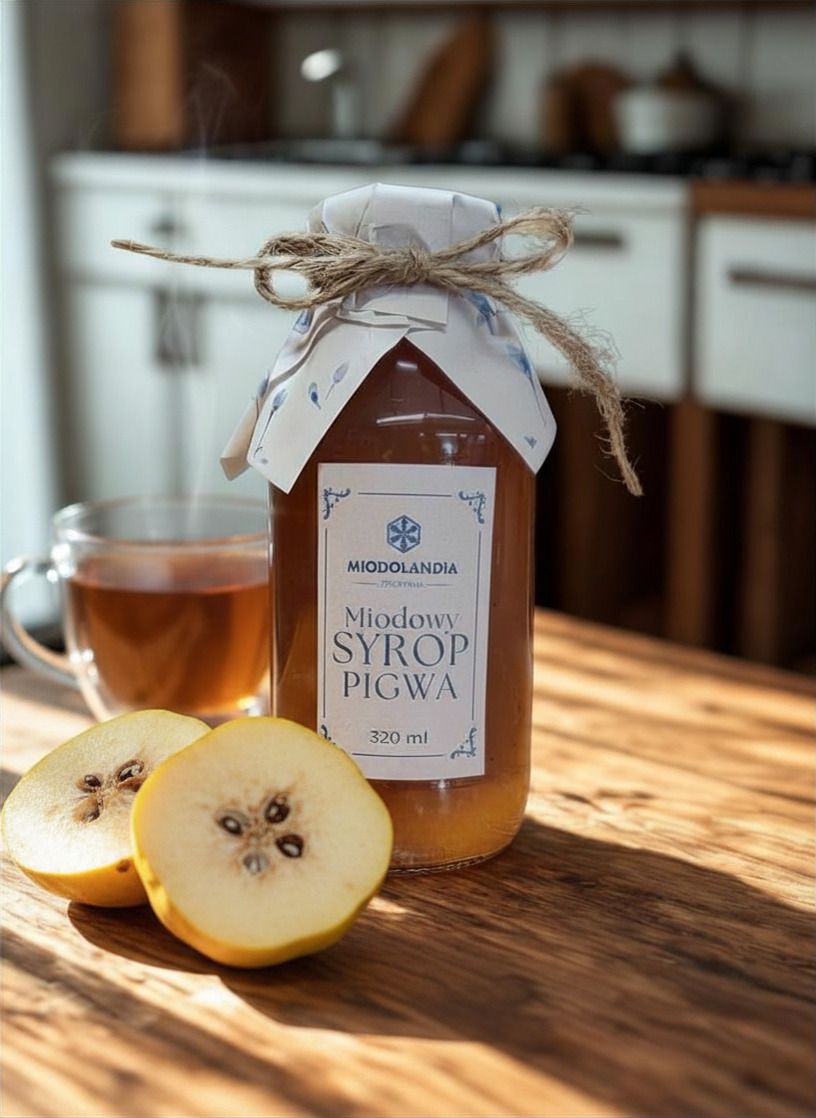 Pigwa od dawna ceniona jest za swoje właściwości – naturalnie zawiera witaminę C, wspiera odporność i dobrze sprawdza się w sezonie jesienno-zimowym. Ma też działanie odświeżające i lekko rozgrzewające, dlatego tak dobrze komponuje się z miodem.