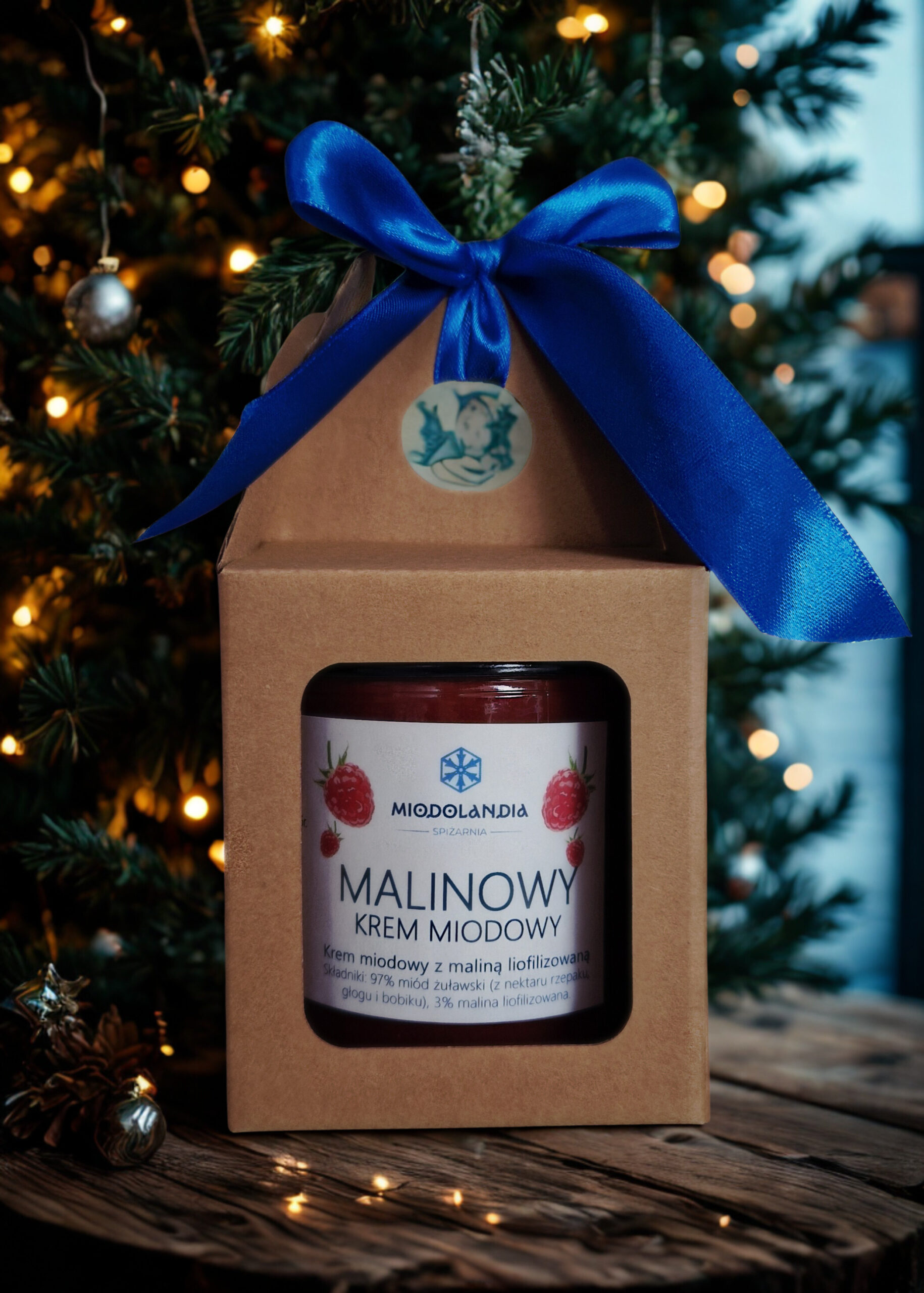 Malinowy krem miodowy zawiera cenne składniki, które wspierają zdrowie na wielu poziomach, zarówno fizycznie, jak i energetycznie. Zawiera: