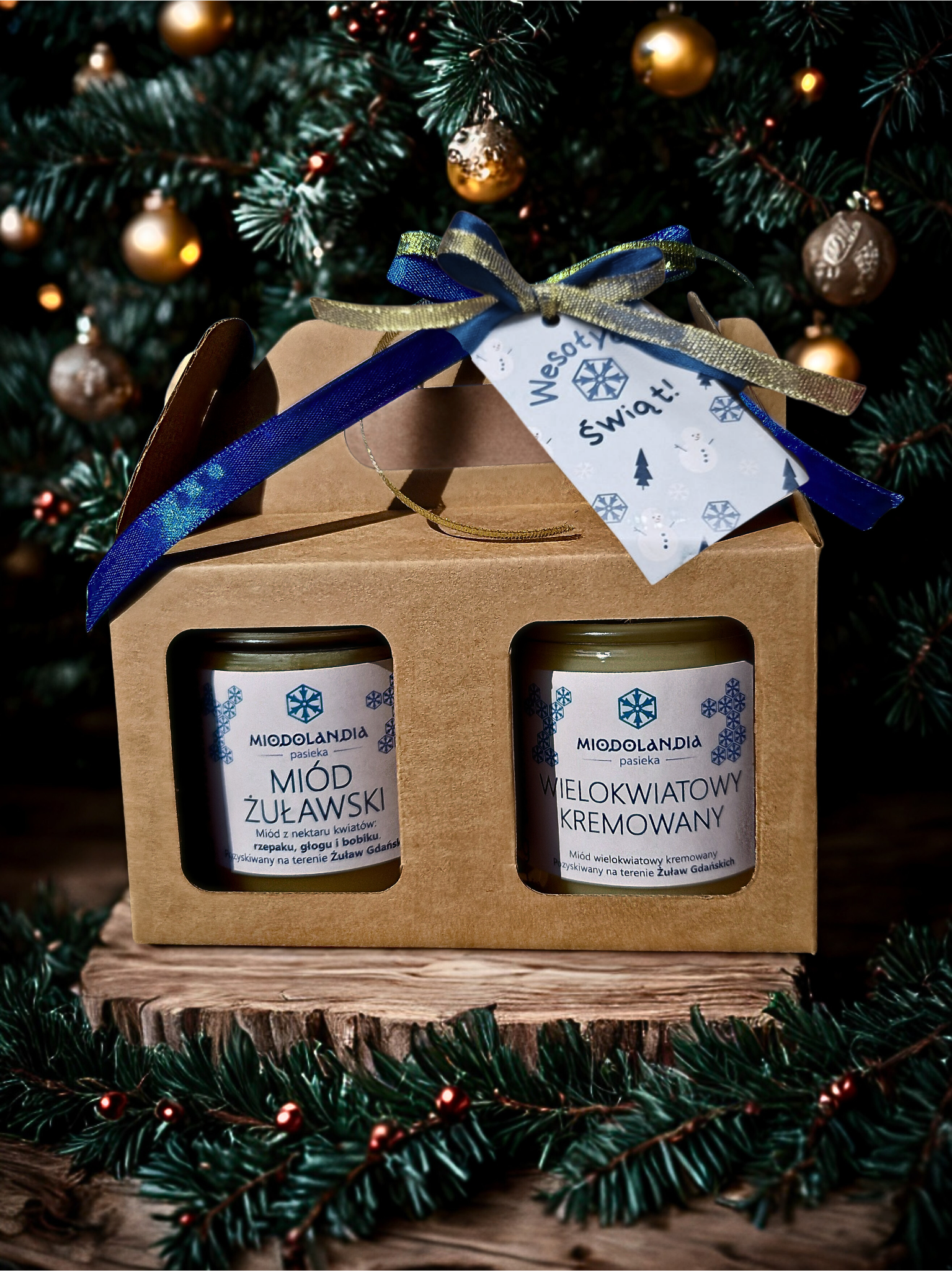 Podaruj wyjątkowy prezent – zestaw dwóch miodów po 380g, starannie dobranych i zapakowanych w naturalny kartonik z uchwytem, przewiązany wstążką i ozdobiony zawieszką. Do wyboru cztery aromatyczne duety, w których króluje nasz regionalny miód żuławski. To zdrowa, smaczna i pełna tradycji alternatywa dla świątecznych słodyczy! 🐝✨