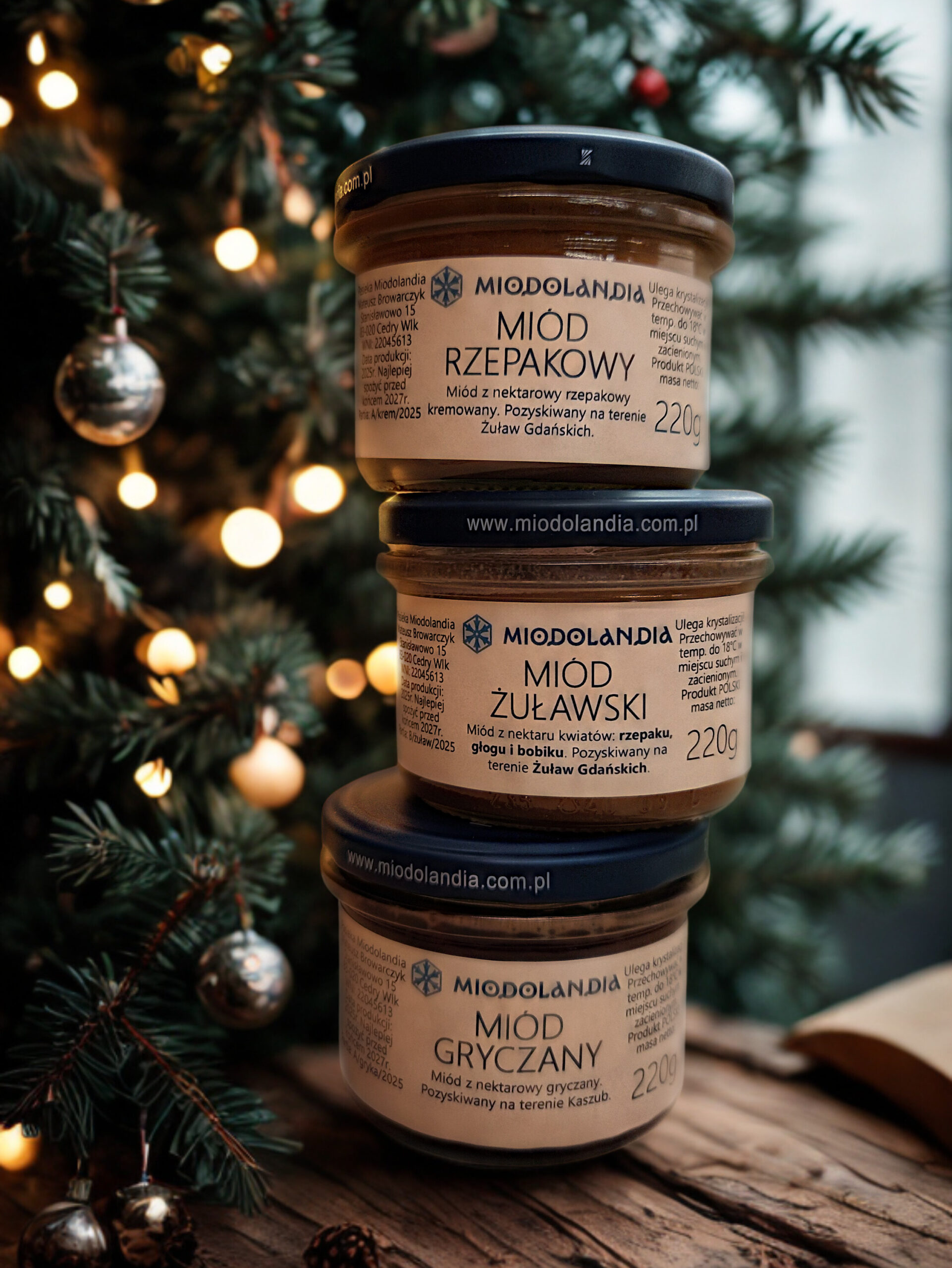 🍬 Zestaw „Świąteczny Cukierek” – trzy naturalne miody w uroczym opakowaniu! 🐝🎁